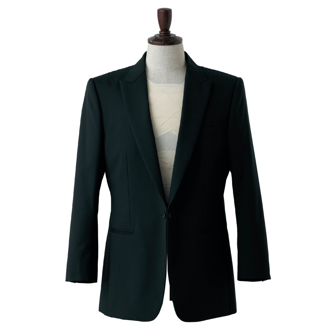 ウール混率の高い高級生地のピークドラペルタキシードです。ピークドラペルは元々モーニングコートなどフォーマルウエアに使われている襟ですので、パーティーやおしゃれな場所での使用をオススメします。ホテルで例えるとフロントやドアマンではなく料飲スタッフの着用が良いと思います。カッティングはどんな体型でもホスピタリティーある着用感を得られるよう考えられて作られています。内ポケットも充実の仕様になっていますので名刺やペンなどシルエットを崩すことなく着用できるのもユニフォームらしい仕様です。