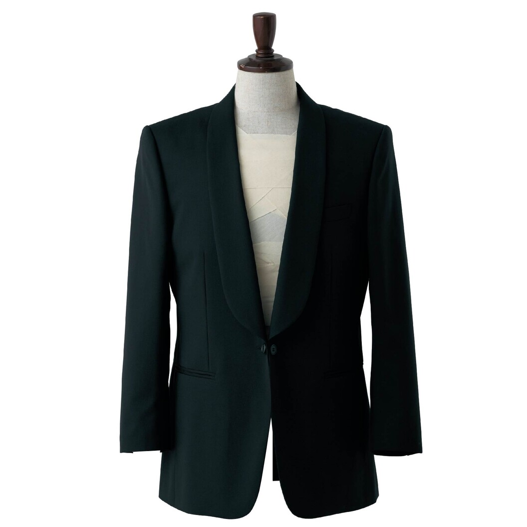 ウール高混率生地の高級感あるショールカラーは共布仕様のユニフォームタキシードです。主にホテル・レストラン向けに開発したもになっています。ピークドラペルとは違う柔らかい雰囲気を醸し出します。内ポケットは名刺入れ、ペン刺し専用のポケットなどが用意され充実の仕様になっております。シルエットに関しては誰が着用してもポスピタリーを保つべくものになっております。ピークドラペル、ショールカラーのどちらを選ぶかを迷いますが、選び方の一つとして先ず環境に合うこと、そして自分らしいものを選ぶことをオススメします。