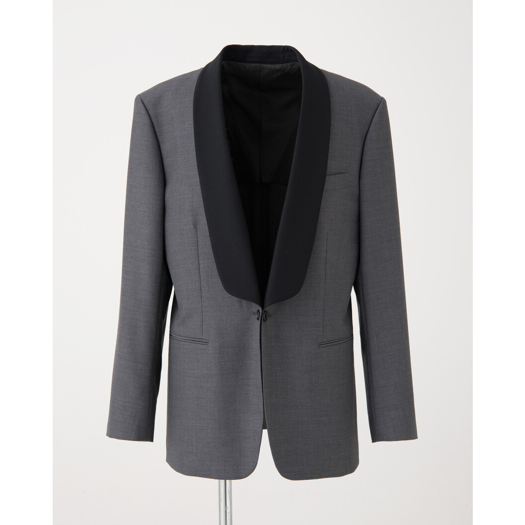 ウール混トップグレーのタキシード。黒での白でも無いグレーはニュートラルな色ですので色々とコーディネートの巾がききます。ホテル・レストランのコンセプトに合わせてこのタキシードを選んでみても良いでしょう。現代的且つ時代を超えたデザインですので永く着用できるものになっています。