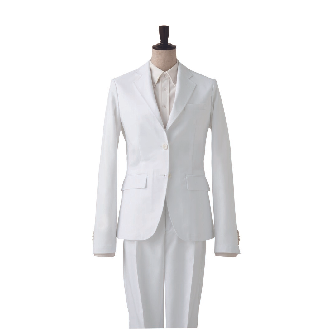 しっかりしたポリエステル高混率のユニフォーム生地で作られたジャケットです。ウールスーツまでは必要ないが、それなりのおもてなしを必要とするサービスにはぴったりです。カジュアルにも見えるのでフレンドリーなお迎えが出来ます。内ポケット左右あり。肩パッドなどはないカジュアルな作りですが着用姿はウールスーツと同じ高いホスピタリティーを保ちます。少しのストレッチがあり動き易いです。白に関しては汚れを落としやすくする加工が施されています。新品時は硬く感じますが、着用回数を重ねていくと体に馴染んでいきます。同素材のパンツのご用意がありますのでスーツとしての着用もオススメします。