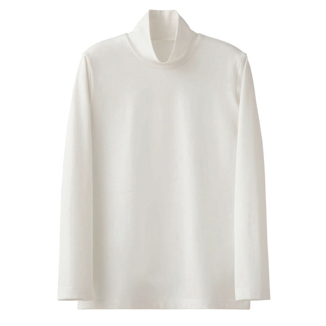 ポリエステル100%素材をフライス編みにして作られた9分袖タートルネック。フライス編みは生地に厚みを持たせながら伸縮性もあるという特徴があります。厚みがありますので透けに関してはそれほど気にせず着用出来、肌さわりがとても気持ちよくストレスなく働けます。一番の特徴はスーパーマルチ加工という数種の機能が付加されているところです。”光+銀触媒” 機能がほっといても、ある程度の匂いや汚れを酸化分解しますので、言い変えますと ”セルフクリーニング” といえるような機能が付いています。その他に吸水速乾、汗ジミ軽減、防臭、抗ピリング(毛玉出来にくい)、弱酸性、防汚性ありと働くユニフォームとしてはとても便利な多機能素材になっています。色はベーシックな展開になっており、合わせるコーディネートにより幅広く表現出来るアイテムになっております。