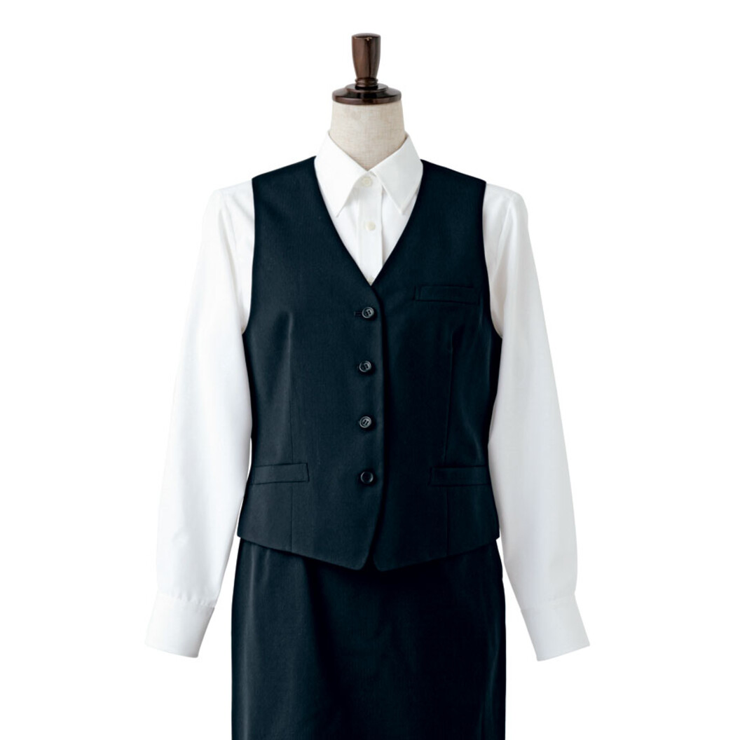 ホテル・レストラン向けベストです。シンプルで普遍的なデザインで作られていますので永く着用出来ます。後ろに調節ベルトがありますので身体に合わせて調節して下さい。