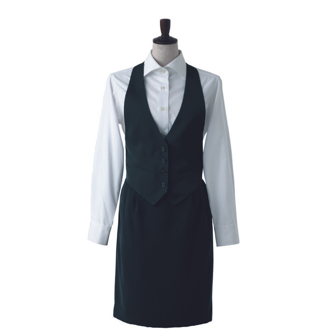 カシミヤ調の柔らかさと、ビロードのような光沢を持つドスキン織りで出来たフォーマル用高級ユニフォーム素材で作られています。しっかりとして厚みも適度にあります。デザインはシングル合わせのカマーベストです。ネックの後ろに調整ボタンがあります(3段階)。カマーバンドの代用品として使用するものですので、フォーマルシーンでの着用がよいと思います。総裏仕立て、バックル付きベルトがあり、ウエストをしっかりサイズ合わせすることが出来ます。制電糸は織り込まれていますので埃を寄せ付けにくい生地になっております。