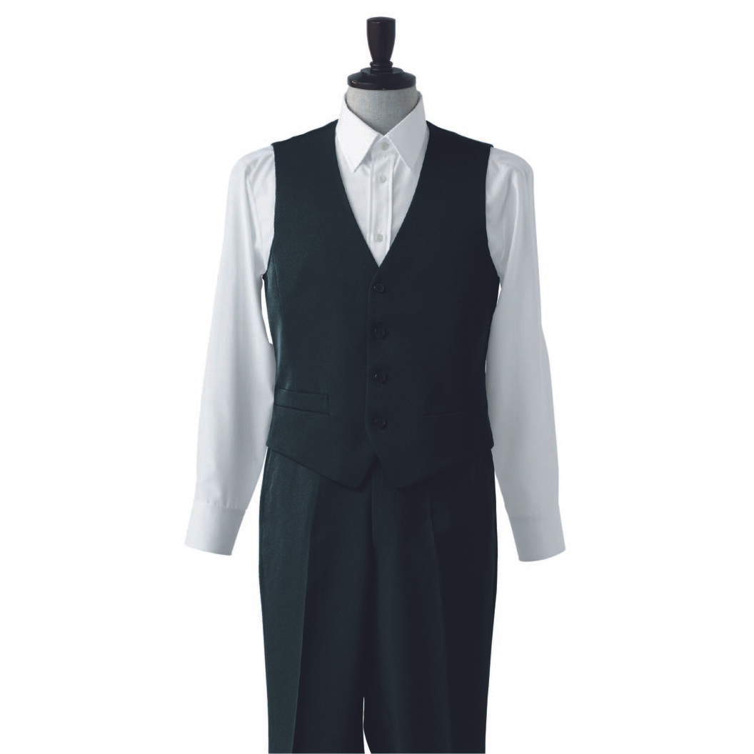 カシミヤ調の柔らかさと、ビロードのような光沢を持つドスキン織りで出来たフォーマル用高級ユニフォーム素材で作られています。しっかりとして厚みも適度にあります。デザインはベーシック。定番のベストになりうる商品ですので用途は幅広いと思います。総裏仕立て、背にはバックルベルト付き。制電糸は織り込まれていますので埃を寄せ付けにくい生地になっております。