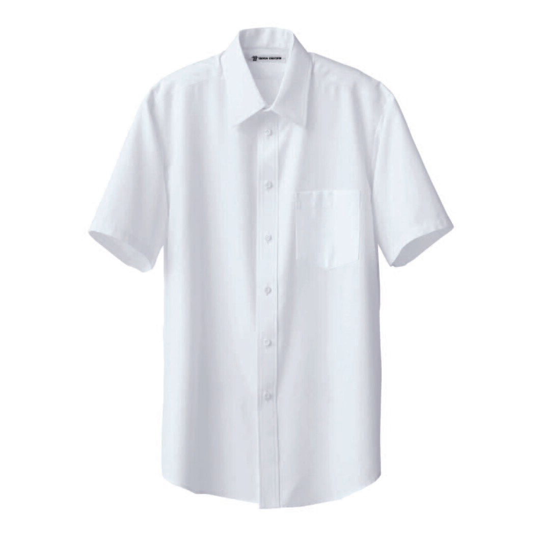 洗濯性に優れ、かつシルクの様な風合いのシャツです。綿とは違う上質な着心地を得ることが出来ます。前立てあり、左胸にポケットがあるシンプルなデザインです。素材感(シルク風)を活かすコーディネートが特にオススメです。例えばエプロンと合わせてエレガントなサービスシーンに活用すると良いと思います。男性用、半袖。透け防止、UVカット機能あり。