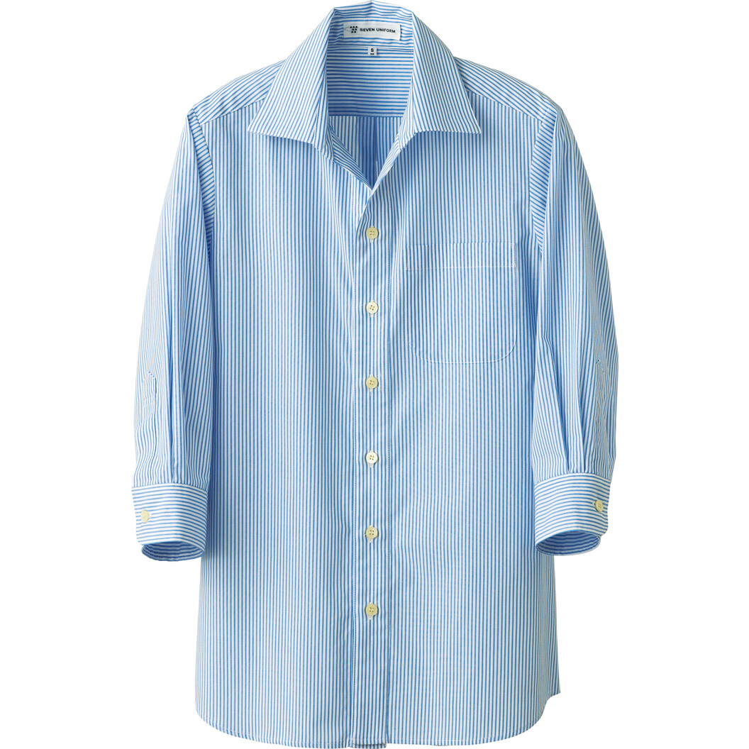 ニュースタンダードシャツのストライプ版として開発。スキッパーカラー7分袖です。襟元が開くことで涼しげ、合わせてエレガントさも持ち合わせたシャツです。反面裾を出してカジュアルに着こなすことも出来ます。ユニフォームとしては薄手の生地ですので比較的涼しいです。ストライプのピッチが細かいので誰もが着用しやすい柄になっています。左胸にはポケットあり。