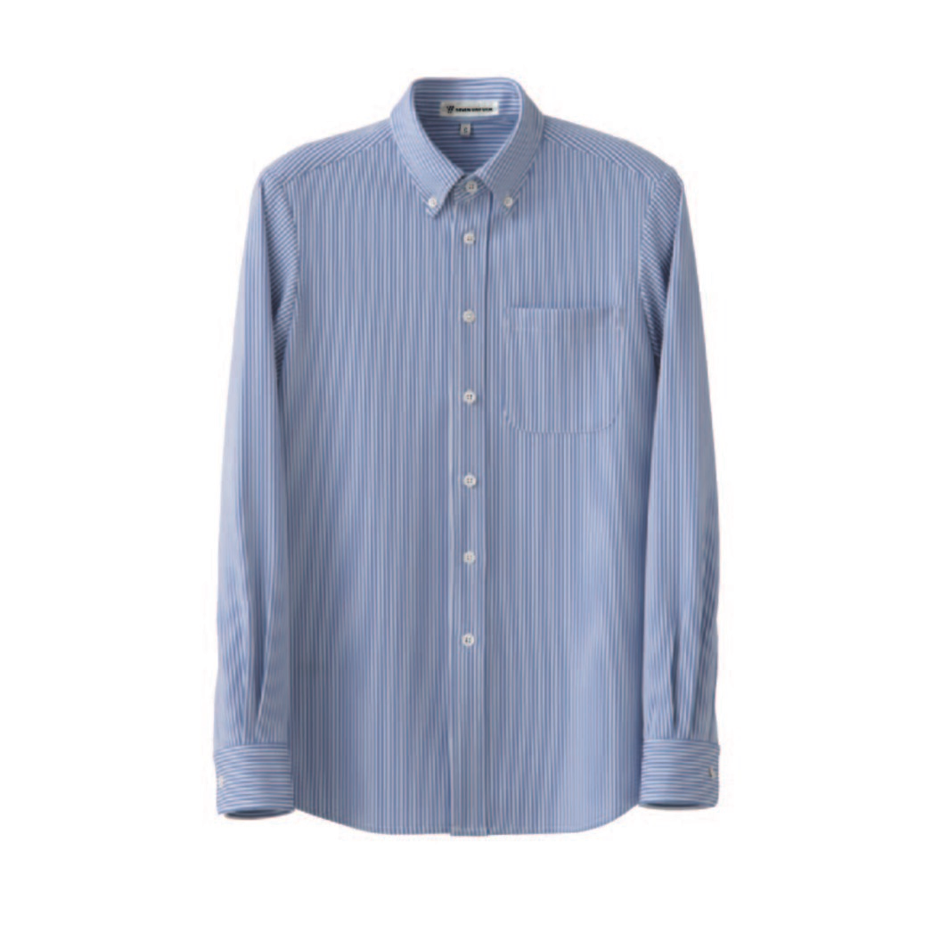 ニュースタンダードシャツとして開発。ジャージー素材ですのでストレッチあり。スーツと合わせることもでき、シャツの裾を出してカジュアルにも着こなすこともできる定番シャツです。B.Dカラー長袖、ストライプ、吸水速乾機能付き。カッティングは大は小を兼ねる従来のユニフォームシルエットから脱皮し、適度にフィットするシルエットを開発。色はホテル・レストランの色々なコンセプトに合うよう3色を展開しています。