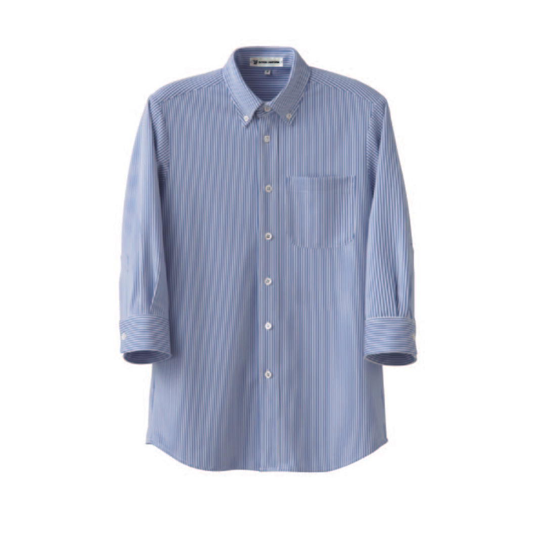 ニュースタンダードシャツとして開発。ジャージー素材ですのでストレッチあり。きちんと着合わせることもでき、シャツの裾を出してカジュアルにも着こなすこともできる定番シャツです。B.Dカラー7分袖、ストライプ、吸水速乾機能付き。カッティングは大は小を兼ねる従来のユニフォームシルエットから脱皮し、適度にフィットするシルエットを開発。色はホテル・レストランの色々なコンセプトに合うよう3色を展開しています。