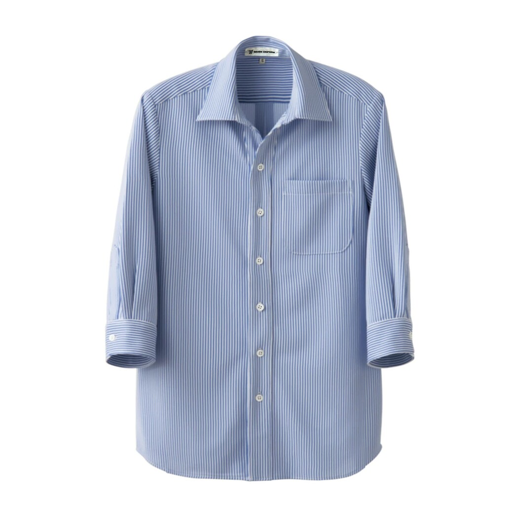 ニュースタンダードシャツとして開発。ジャージー素材ですのでストレッチあり。きちんと着合わせることもでき、シャツの裾を出してカジュアルにも着こなすこともできる定番シャツです。スキッパーカラー7分袖、ストライプ、吸水速乾機能付き。カッティングは大は小を兼ねる従来のユニフォームシルエットから脱皮し、適度にフィットするシルエットを開発。色はホテル・レストランの色々なコンセプトに合うよう3色を展開しています。
