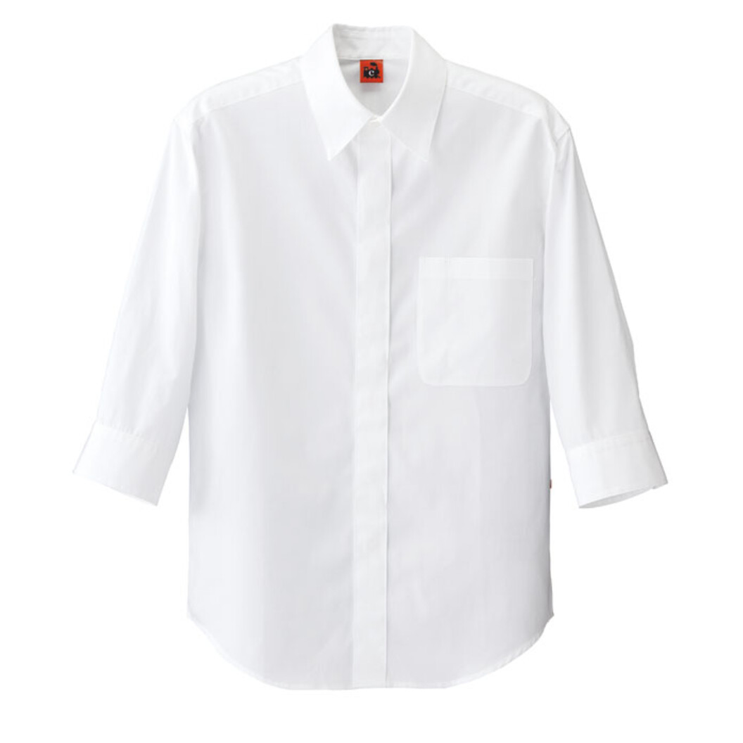 綿100%ブロードのベーシックな比翼7分袖シャツ。ボタンが見えないので上品な印象を与えます。腰を落とした際などにボトムからシャツが出ないよう着丈は長めです。ポケットにはペン1本分のスペースも用意されています。誰にでも似合い、安心して着用でき、巾広いシーンで使えるものになっています。