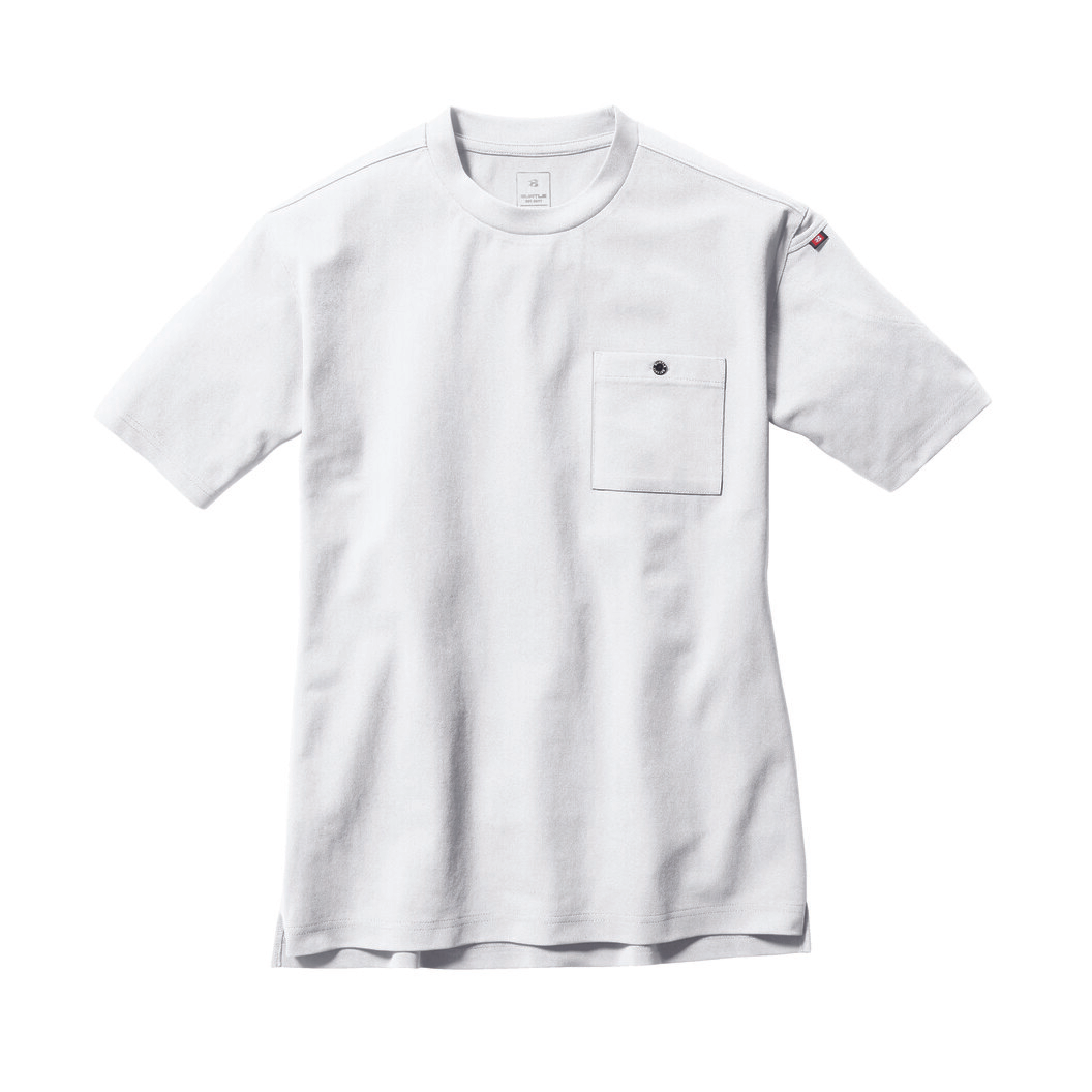 さらりとした触感、通気や速乾のパフォーマンスが魅力のポリエステル鹿の子のポケットTシャツ!1枚で着ても様になるグッドルッキングなファーマルTシャツ。ドライな触感、ストレッチ、吸水速乾のパフォーマンスを有するポリエステル鹿の子素材。通気性、UVカット、消臭テープの機能性が着用時の不快感を軽減。ボディにはシャープなXラインシルエットを採用、胸、袖にマルチポケットを配備。