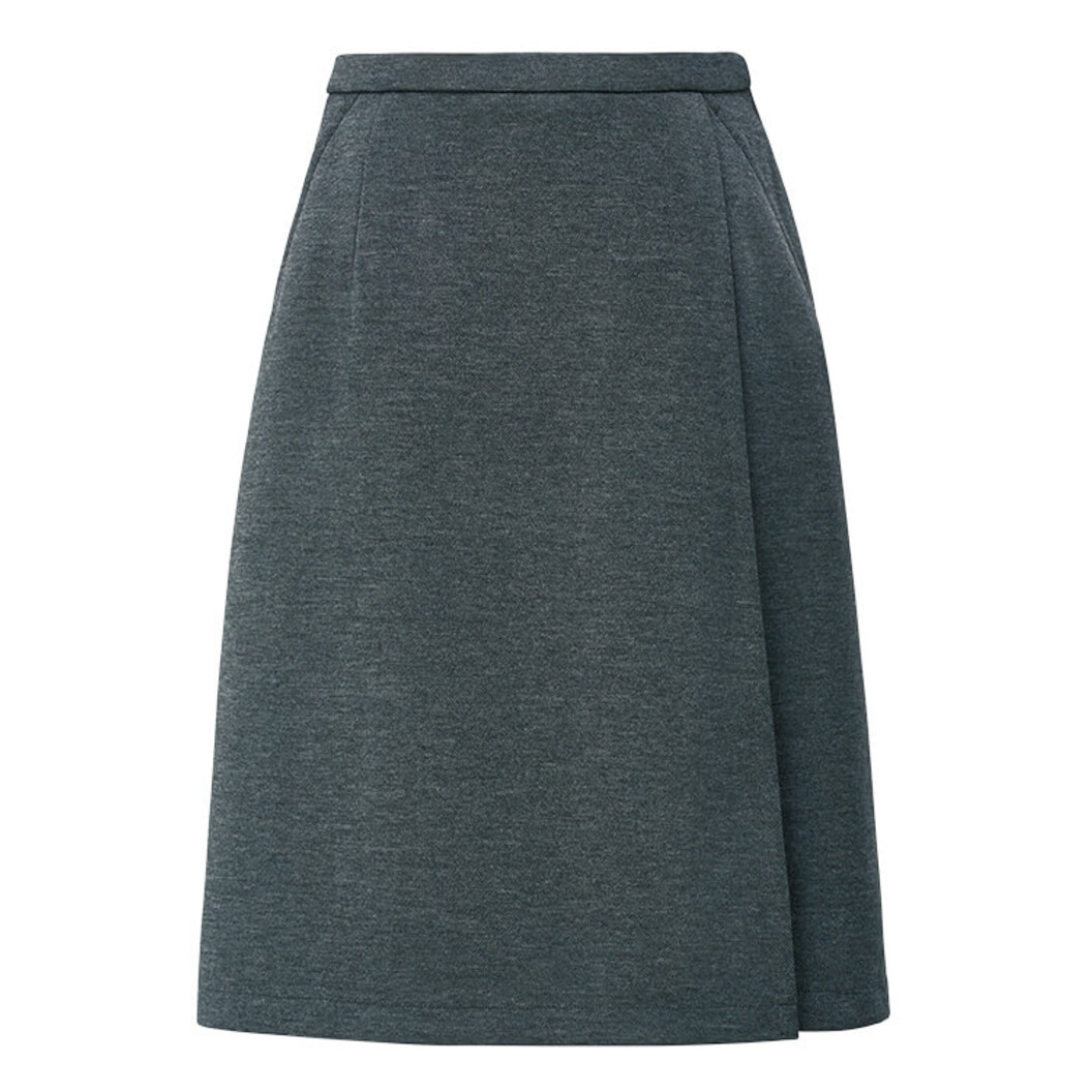 ニット素材のラップキュロット。ウエストは5cm伸びるゴム仕様だから、立ち座りが楽。左脇ファスナー開き、両脇ポケット付き。ベルト裏には厚みを抑えたオリジナルの滑り止め付き。 汎用性の高い黒とグレーの2色展開です。