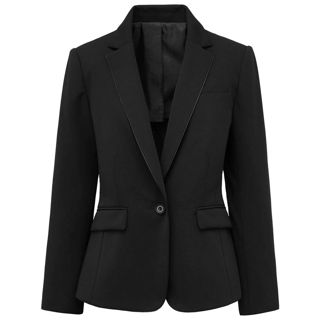 スマートなスタイルの1つボタンのテーラードジャケット。肩や脇腹がすっきり見えるシルエットです。優れた防シワ性で人気のシリーズです。ニットなのにきちんと見える素材感で、冠婚葬祭、販売等にもおすすめ。軽くてストレッチ性の高い生地なので、スムーズな動きをアシストします。衿端や前端部分に同色サテンのパイピングを配しています。右衿下にはアクセサリー用ホルダー、左胸ポケットにネームホルダー、左胸に内ポケットが付いています。裏地は背抜き仕立て、後ろ裾にはセンターベントが入っています。ブラックとネイビーの2色展開で、家庭洗濯できます。