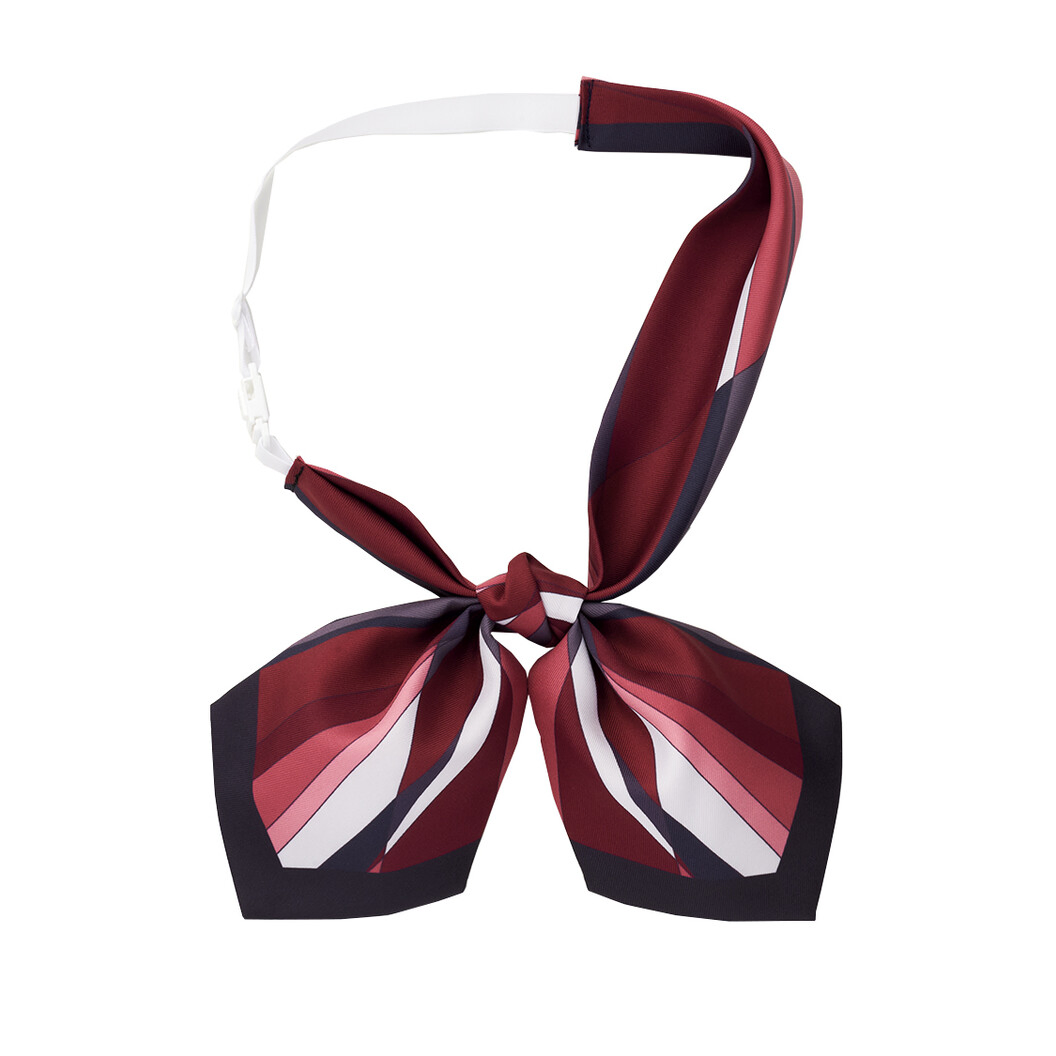 サイズ調整可能なタイ。簡単に着脱ができます。レッド系、ブルー系の2色展開。同じ色でリボン型もあります。コーポレートカラーを意識した色展開でカーディーラーやショールームにお勧めです。