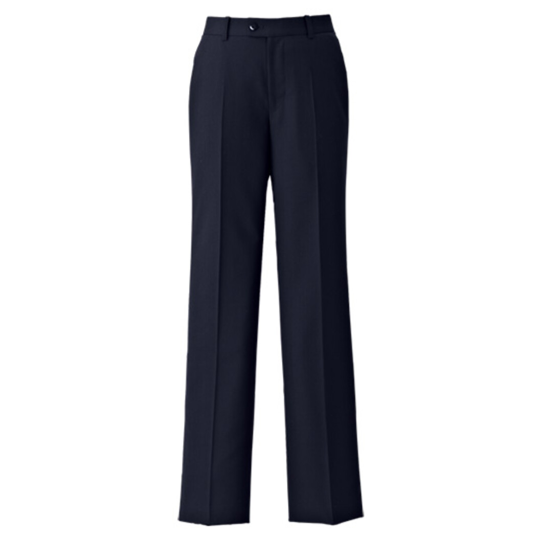 黒×紺のシャンブレー織りをベースに綾組織によるコードのようなストライプ柄の生地がシャープさを演出。太すぎず細すぎずの絶妙なシルエットで美脚を演出します。