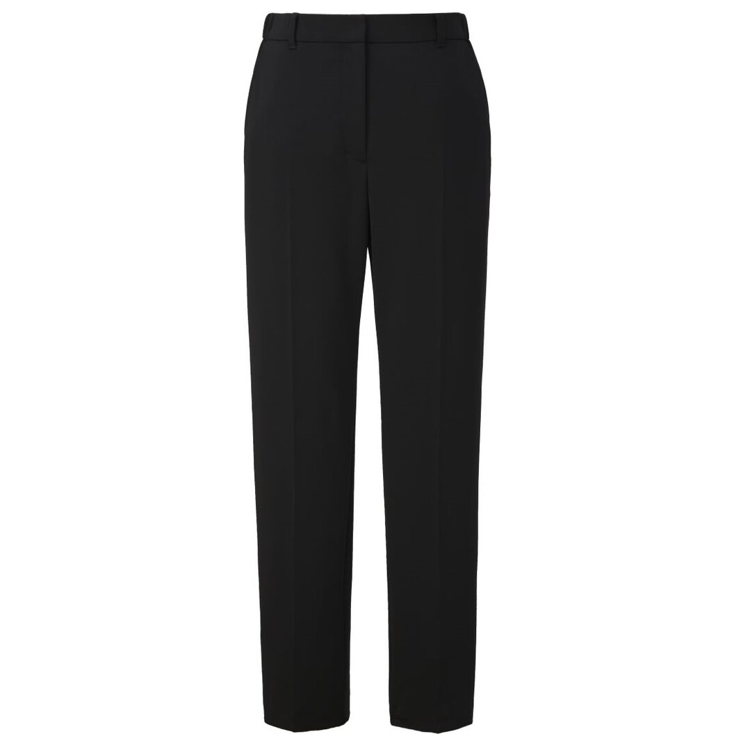 腰回りから膝にかけてゆとりのあるテーパードシルエットのパンツ。優れた防シワ性で人気のシリーズです。ニットなのにきちんと見える素材感で、冠婚葬祭、販売等にもおすすめ。ストレッチ性に優れ、きれいなシルエットが特長で、きちんと感のあるブラックとネイビーの2色展開です。しゃがんでもズレにくいベルト位置とお腹が出にくいサポート仕様も取り入れています。ウエストが10㎝伸びる後ろウエストゴム、脇ポケット位置の縫い目を無くし、袋布が出にくい美仕様です。両脇、後ろ左右にポケット付き。伸縮性があり、通気性の良いメッシュ裏地付きです。裾上げしていない股下フリータイプ、家庭洗濯できます。