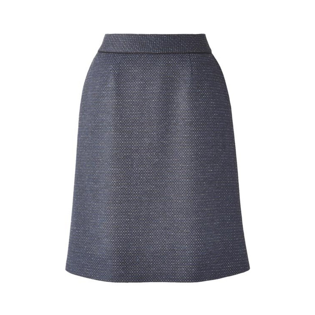 ウエストとスカート部分の間に挟み込んだ黒サテンバイアスのパイピングがアクセントのスカート。見た目はスッキリなのに、ウエストが3㎝伸びるベルトで立ち座りもラクチンな「美ストレッチウエスト」仕様。黒ベースにブルーと杢グレーのツイード調ニット素材だから、黒にも紺にも合う、コーディネートのしやすさも魅力です。同素材のトップスとのコーディネートで、フォーマルな印象になります。