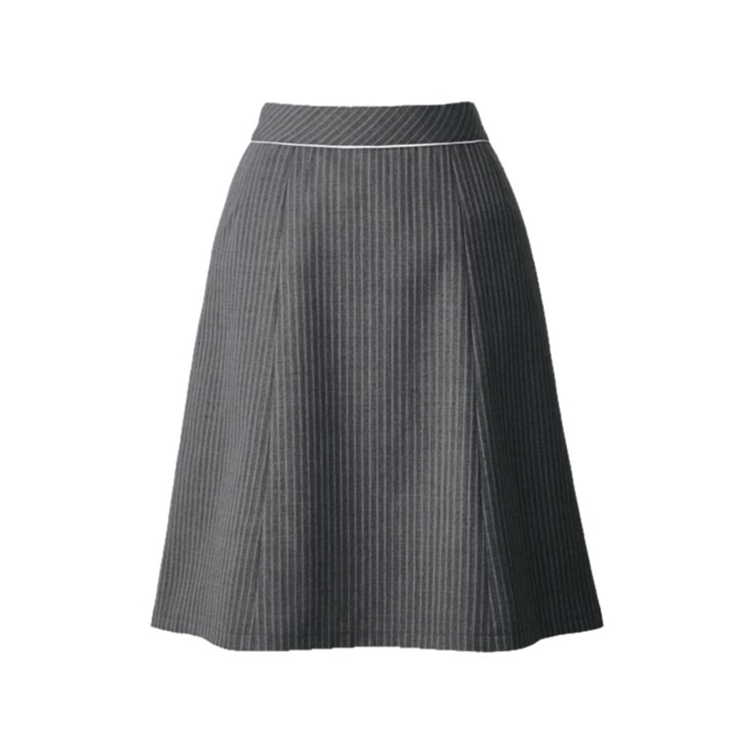 ベーシックで着こなしやすいストライプのAラインスカート。ストライプのラインと同色のカラーアクセントつきで印象をチェンジして楽しめる、おしゃれ心と機能性を兼ね備えたシリーズです。「明るいグレーベースにグレー+ピンクのライン」、または「紺ベースにグレー+ブルーのライン」を配した2色展開。スカートのウエスト部分にもカラーパイピングを配置。シャツ×スカートのシンプルコーデも華やかです。