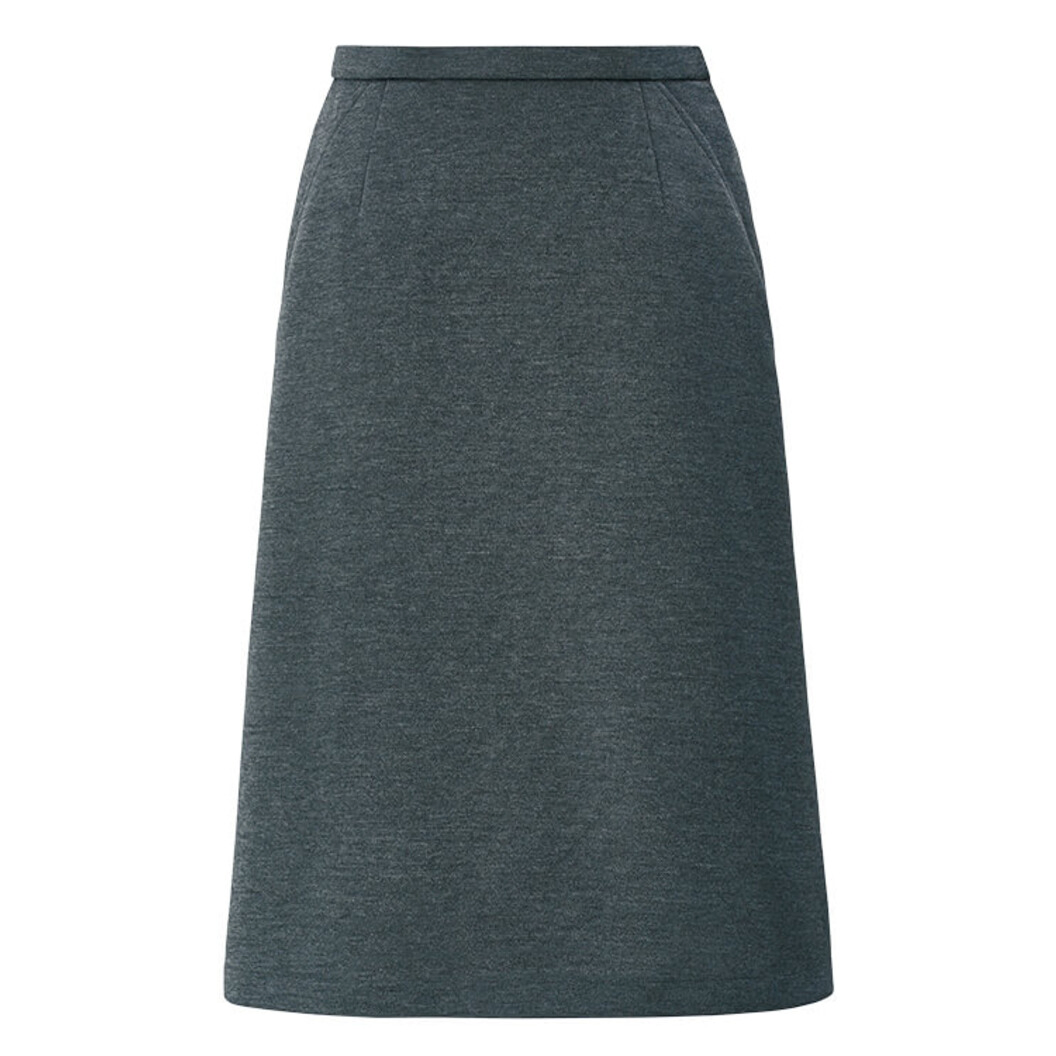 ニット素材のスカート。着席時を考慮した適度なゆとり、脚さばきも良いAラインシルエット。ウエストは5cm伸びるゴム仕様だから、立ち座りが楽。ベルト裏には厚みを抑えたオリジナルの滑り止め付き。左脇ファスナー開き、両脇ポケット付き。 汎用性の高い黒とグレーの2色展開です。