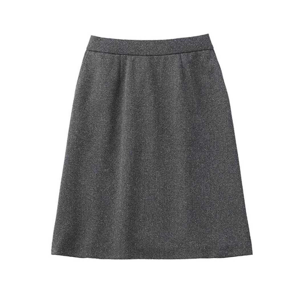 クラシカルなテイストで人気のヘリンボーン柄で仕立てたセミタイトスカート。ツイード調の糸を使っているのでポリエステルなのにウール素材のように仕上がっています。Aラインシルエットで裾周りは9号で111cmです。ウエストが3cm伸びるストレッチウエスト。内側には滑り止め、両脇ポケット付き。グレー、ブラウン、ブルーの3色展開で、オフィスから接客まで幅広く着用いただけます。