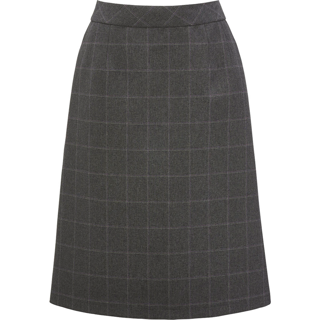 ウインドーペン柄のAラインスカート。シンプルながらも女性らしい印象です。見た目はスッキリなのにウエストが3cm伸びる仕様となっていて、内側には滑り止めテープがついています。グレー系と紺系の2色展開です。両脇にポケット付き、家庭洗濯ができ、シワも目立ちません。