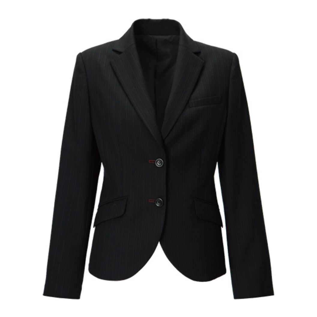 黒をベースにしたヘリンボーン組織によるシャドーのストライプに、ダークワインのラインを加えたおしゃれ感あるストライプ柄。ダークワインのボタンホールでオシャレ度アップ!
