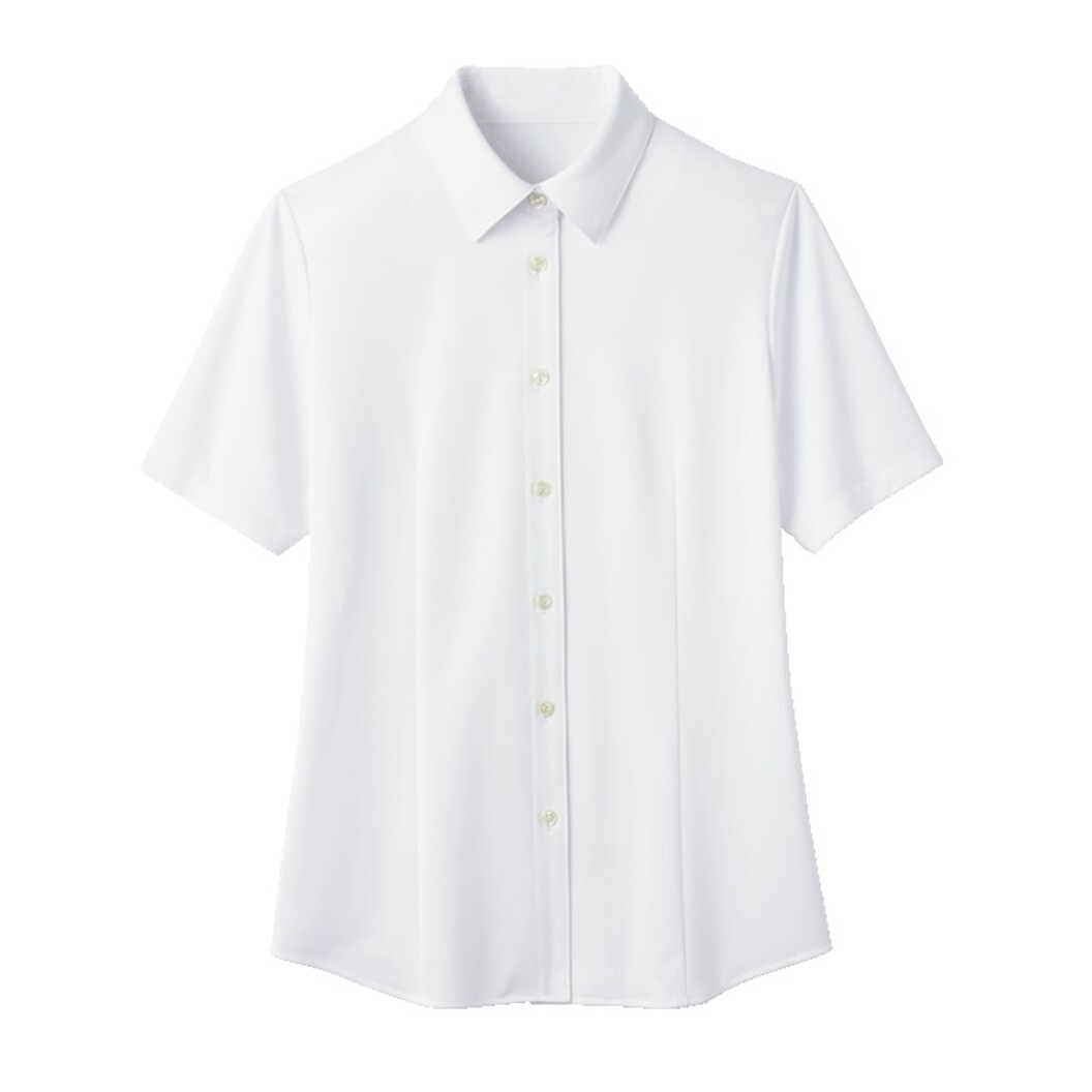 伸縮性のあるニット素材で動きやすくシワになりにくいです。ソフトですべすべと肌触りで一日中快適!しかも透けにくいので安心して着られます。速乾性に優れているのでお家で気軽にお洗濯して部屋干しもOK。ノーアイロンでイージーケア!襟下に、アクセサリー用ボタン付きだから、スカーフやリボンがずれずにいつでもきちんと。