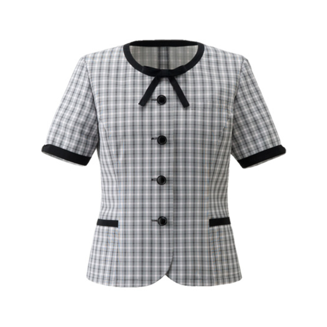 繊細で優しいモノトーンのグレンチェックで、白のバランスが多く、ピンクの差し色効果で明るい印象。また、袖やポケットの縁取りがリボン風のデザインになっていたりと、こだわりのディテールにも注目です。