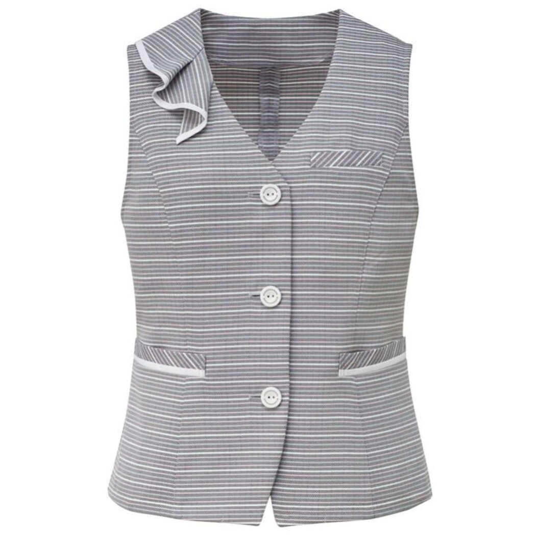 華やかで上品なベスト。ラメ糸の入ったキャンディカラーで配色したボーダー柄の素材を使っています。ピンク系はグレーベース、イエロー系はネイビーベースになっています。脇に消臭・制菌加工のデオファクターテープを施しているので快適に過ごせます。両腰にスマートフォンが入るポケット、左腰には小分けポケット付きです。
