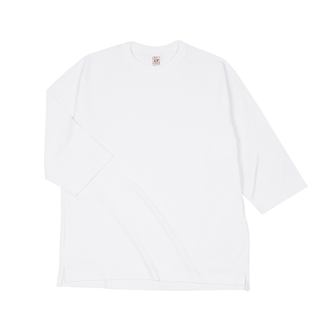 オープンエンド糸を使用したラグラン7分袖Tシャツ!切れるネーム:襟ネームは簡単に手で切り取ることのできる素材を使用してます。オープンエンド糸を使用:オープンエンドの糸はふっくらとしておりボリュームがある一方で、ドライでザックリとした風合いです。