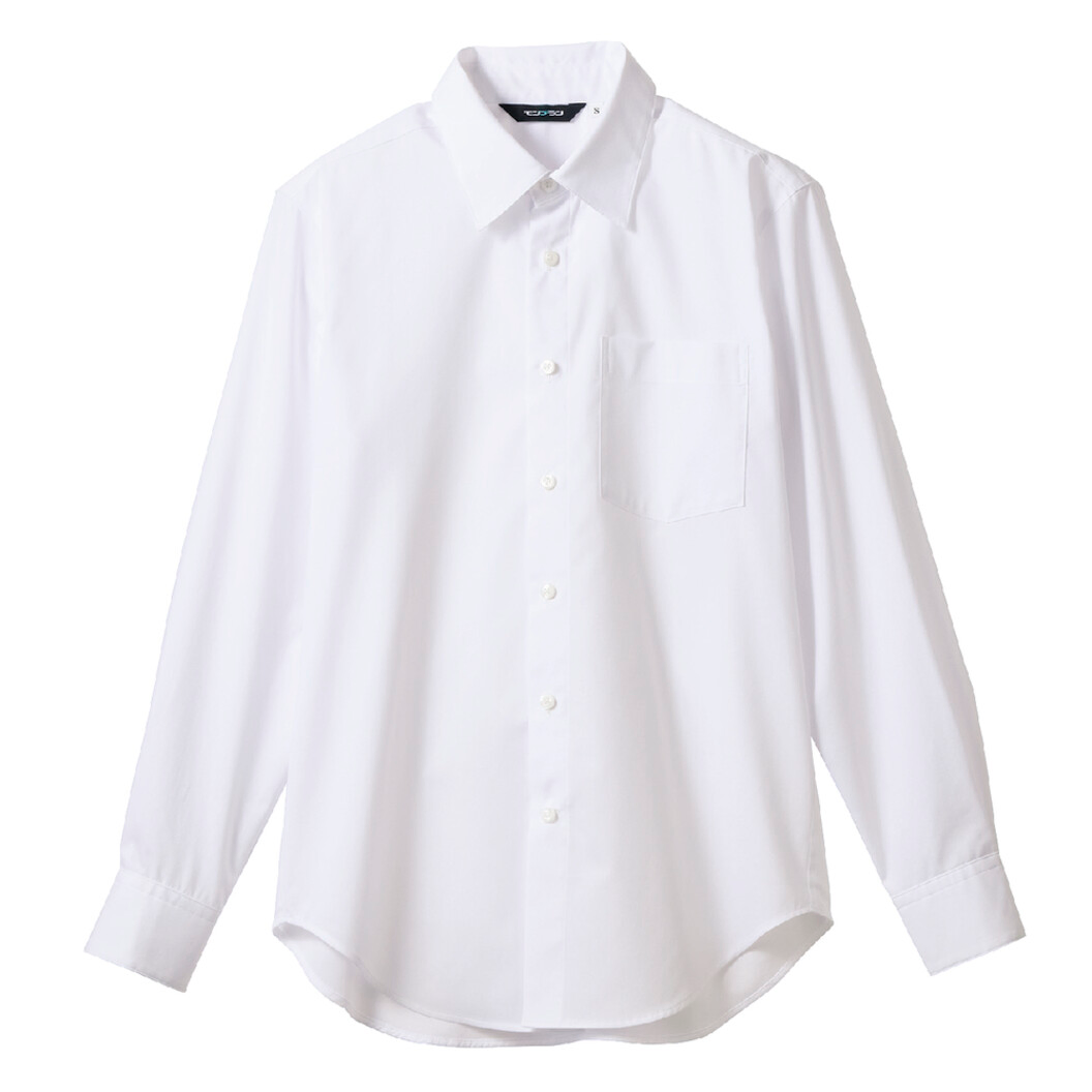 細身でも動きやすく、着崩れしないシルエットが魅力のベーシックシャツ。1枚で着ても美しく、エプロンやベストを重ねてももたつきません。ネクタイの有り・無しどちらでも印象の良い小ぶりな衿で幅広いシーンで着用可能な汎用性の高い長袖シャツです。