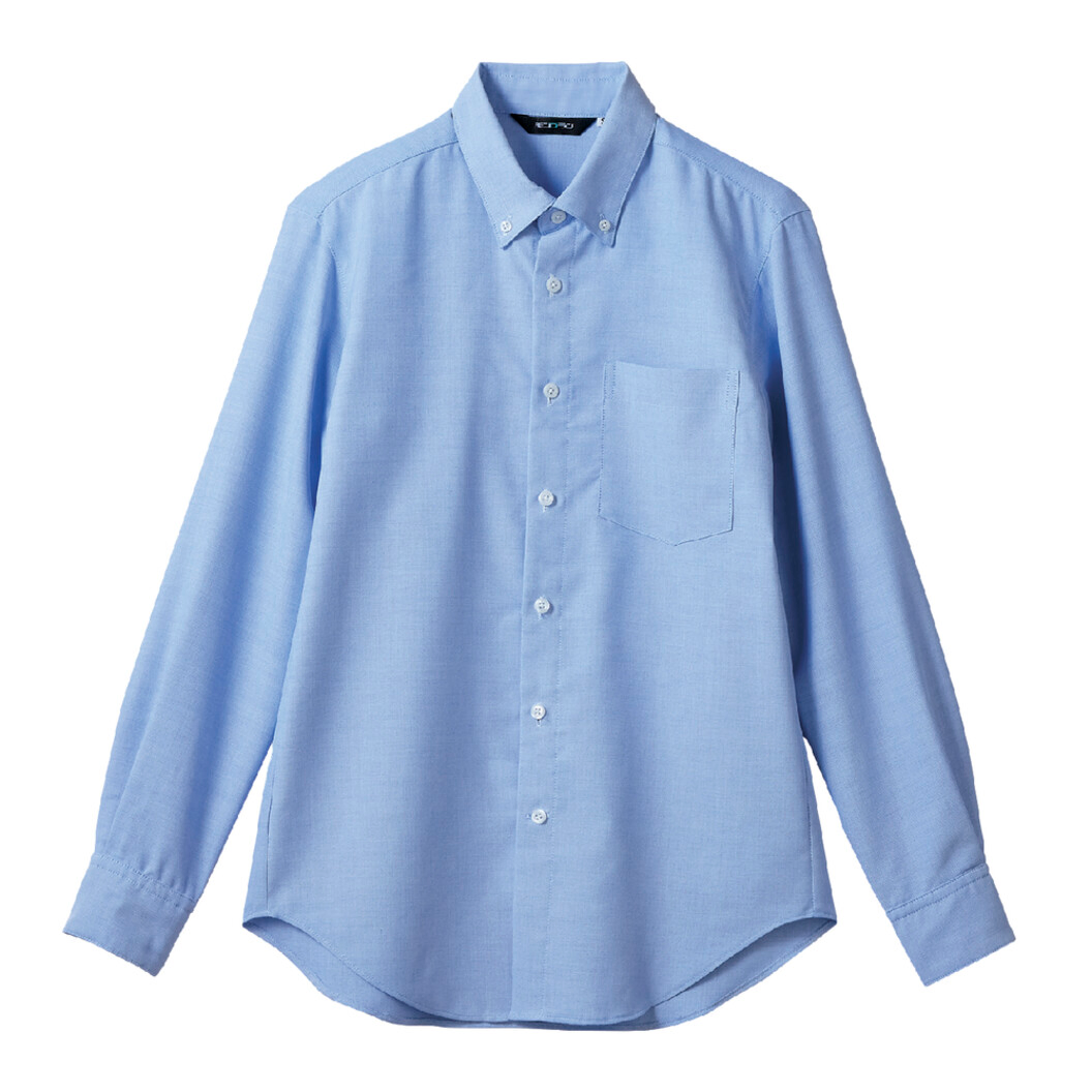 ボタンダウンシャツの代表格、オックスフォードシャツが登場。細身シルエットで動きやすく、すっきりと着こなせます。素材は、濡れ色抑制機能を持つ吸水速乾素材「ドライオックス」を採用。汗や水濡れによる濡れ色を防ぎ、汗をかいても洗い場での作業をした後も安心して接客できます。