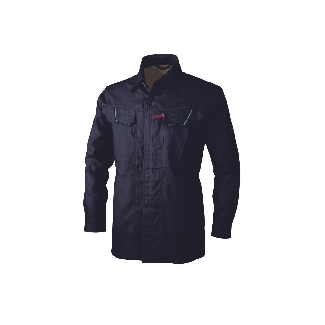 ボタンを隠し、外に出ない仕様にすることで周りのモノを傷つけにくい安心設計の作業服です。