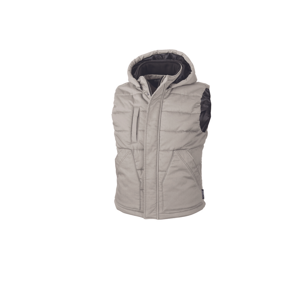 綿100%素材のベストです。フードは着脱可能で土木建築の現場などでも人気のアイテムです。