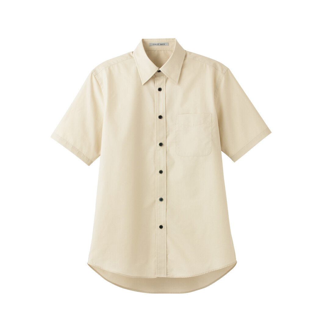 マルチに使える、背中タック入りで動きやすい、定番のブロードレギュラーカラー半袖シャツです。