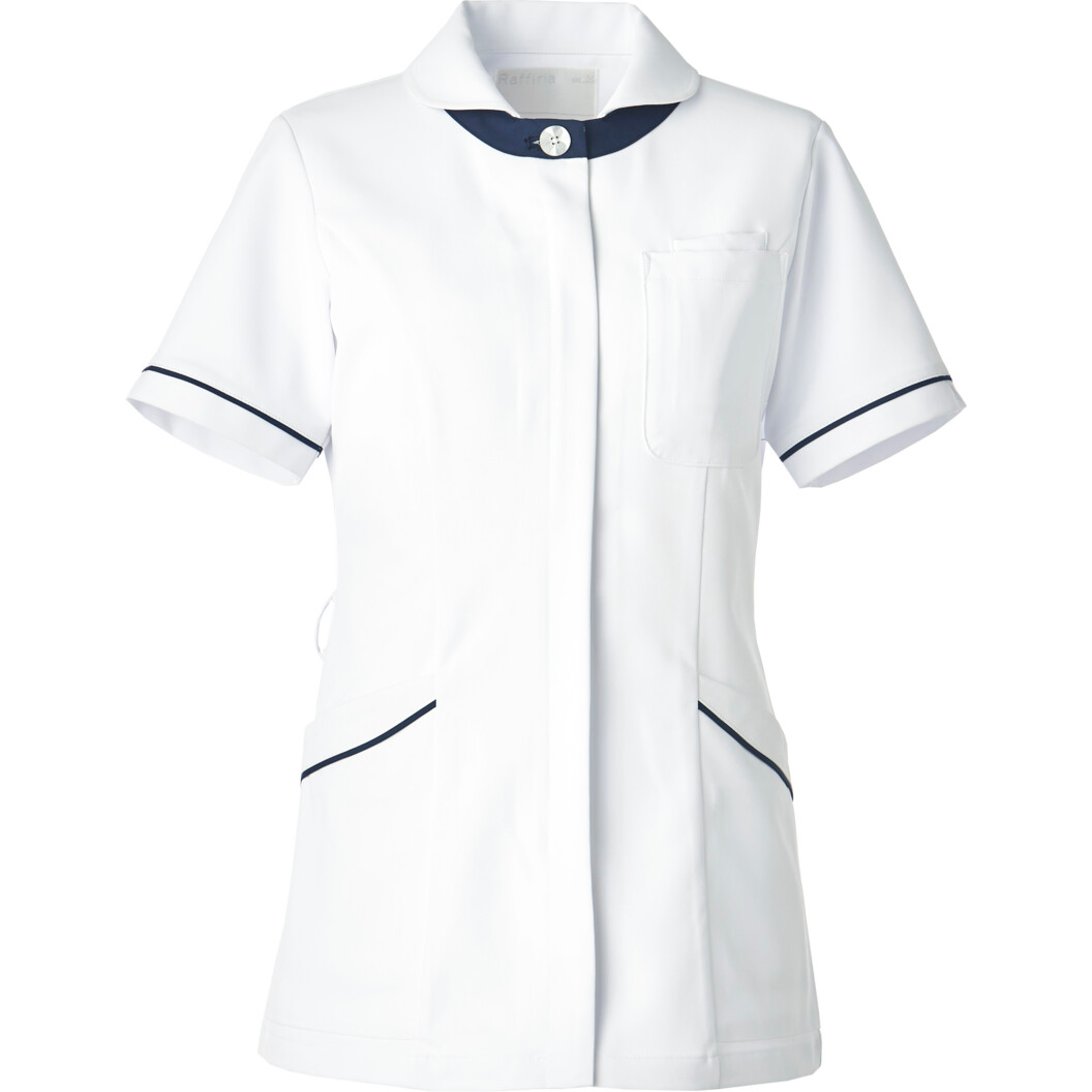 襟元の配色とパール調のボタンが印象的なナースウェアです。知的で優しい印象を与えます。袖口のスリットで腕の動きをスムーズに、両腰と胸元に便利なポケットを施し、機能面でも優れた白衣に仕上げました。安心感のなかに気品が香ります。素材のストレッチバルキーラチネは伸縮性に優れ、伸びやかで美しいシルエットをつくります。汗をかいてもさらりとしていて透けにくいのがポイントです。