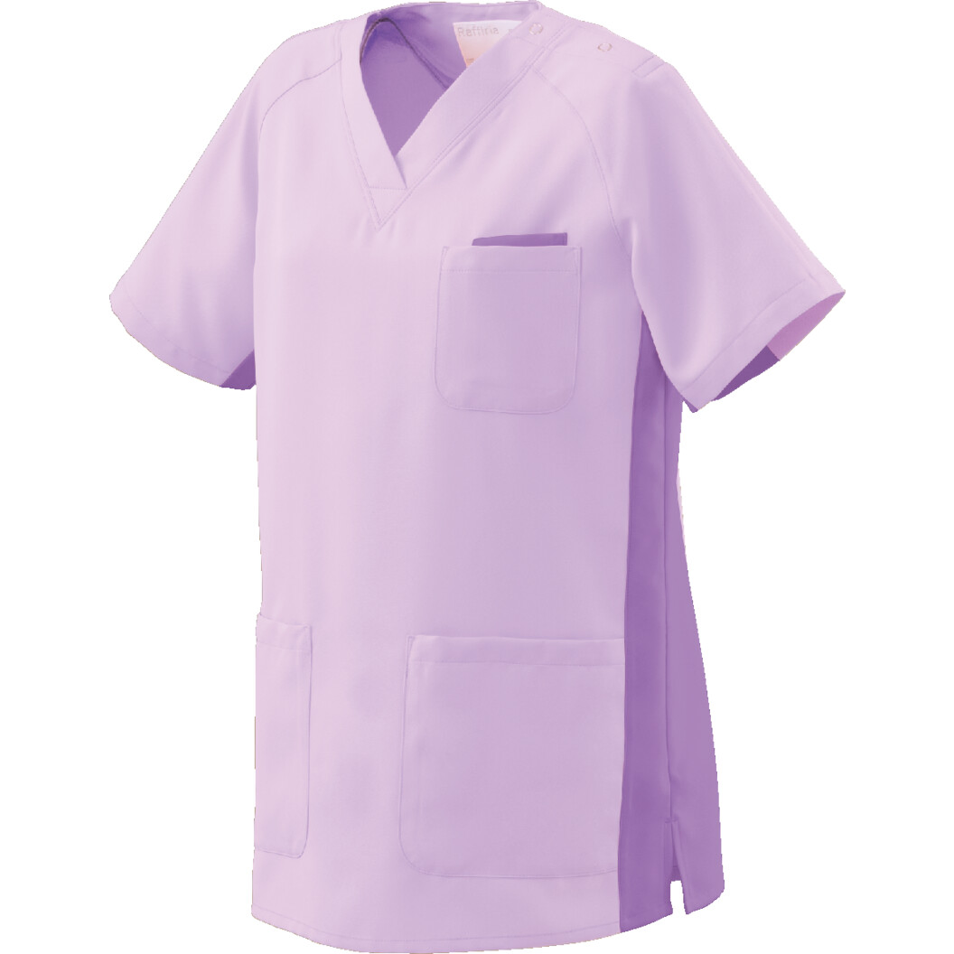 気分によって色を変えたり、職種で色分けをして識別をしやすくしたり。院内をシリーズで統一することでチーム医療の体現もできます。かがんでも胸元が見えない安心の設計や、動きやすいラグランスリーブ、機能的なポケットで、デザインのみならず機能面にも優れた白衣です。繊細な表面感が特徴の、軽量で自然なフィット感があり動きやすい素材なので表面がべとつかず夏場もさらりと快適に着用できます。