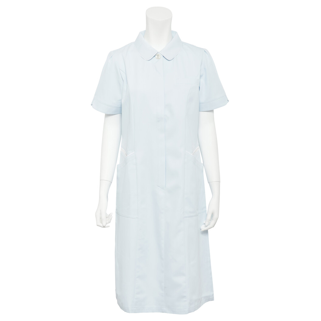 淡いブルーと白のラインがやさしく溶け合う安らぎのデザイン、忙しい現場に優しさを与える、パステル×白の愛されカラーのワンピースです。機能的なポケットや便利なキーループで、機能面にも優れたメディカルウェアです。素肌に着ても気持ちが良い肌触りと伸縮性を兼ね備えた軽量素材で、通常のポリエステルの約2倍の吸水性を持つ高機能素材です。