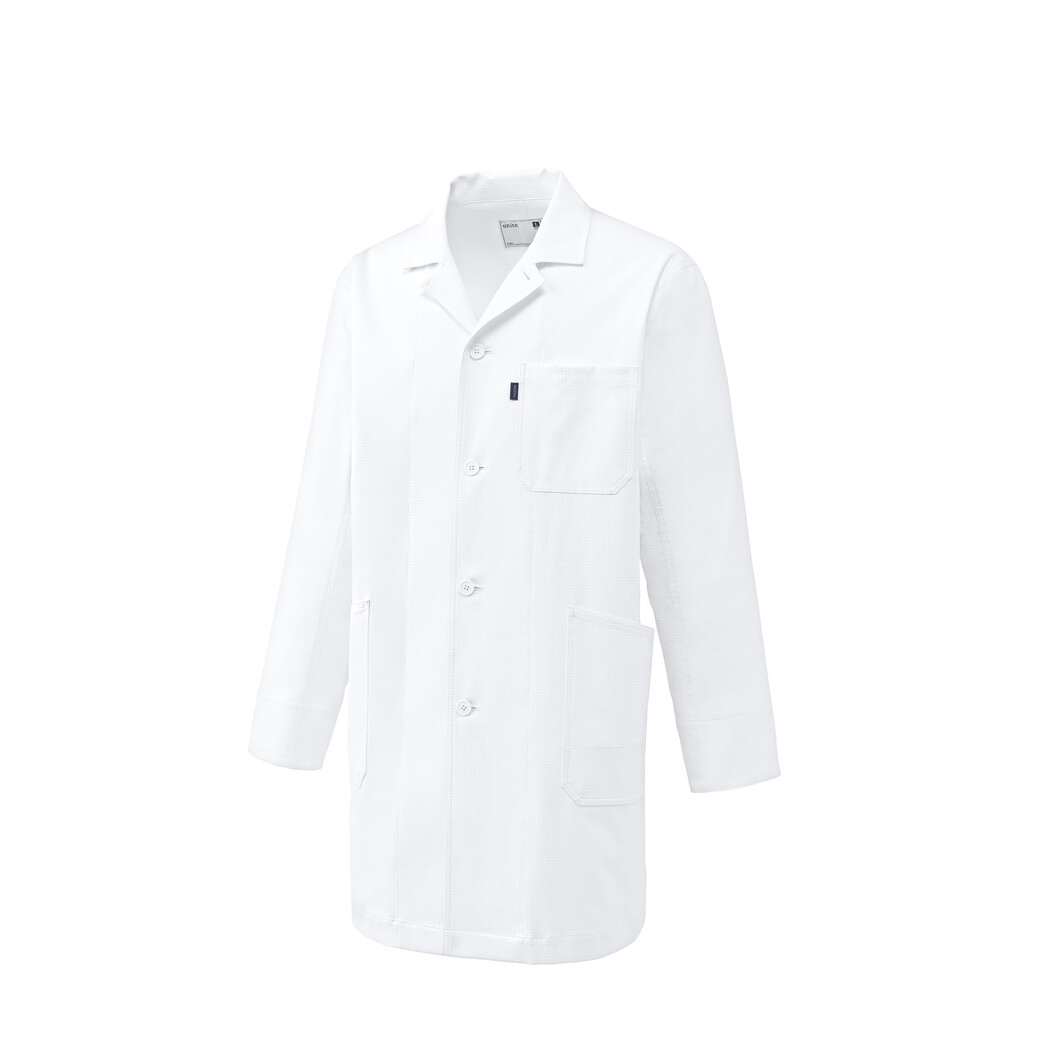 カジュアルなシルエットのドクターコート。 軽い着心地で快適に過ごせます。 格子状の織り柄が特徴的な「リップ ストップ 」。 シャリ感があり、軽い素材ながらも裂けにくく丈夫 。 動きに合わせて伸びるストレッチ性能、抗菌防臭性能も備えています。