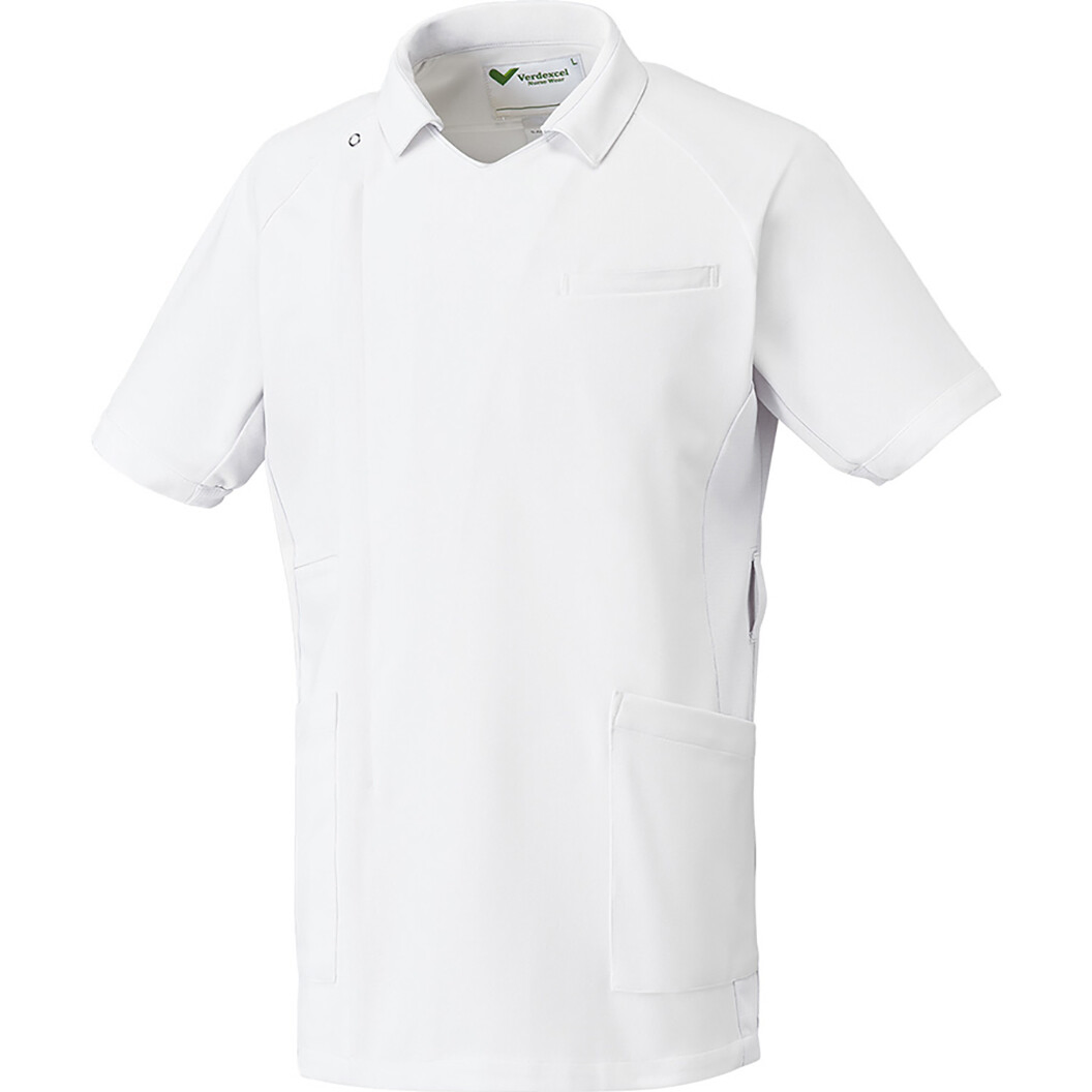 すっきりシャープな印象の襟ありVネック。伸縮性、快適性を追求した新素材トリコット採用のスタイリッシュなジャケットです。フレキシブルメッシュ(背中のメッシュが動きに合わせて伸縮。作業時のストレスを軽減し、通気性もアップします。)W腰ループ(キーホルダーやカラビナループを取り付けられるループ付き。)インクの染みにくい内ポケット(内ポケットにはペンのインクなどが浸透しにくい素材を採用。)胸ポケット(左胸にはペンやPHSの収納にピッタリな小さいポケットを配置。)PHSポケット(腰部にも使いやすいポケットを配置。PHSや印鑑の収納に便利です。)袖口リブ(リブ編みニットがやさしくフィットするので腕を上げても脇下が気になりません。)裾スリット(裾にスリットが入っているので動きやすい。)ラグラン新立体裁断構造(高い伸縮性で腕の動きを妨げないラグラン新立体裁断構造。)