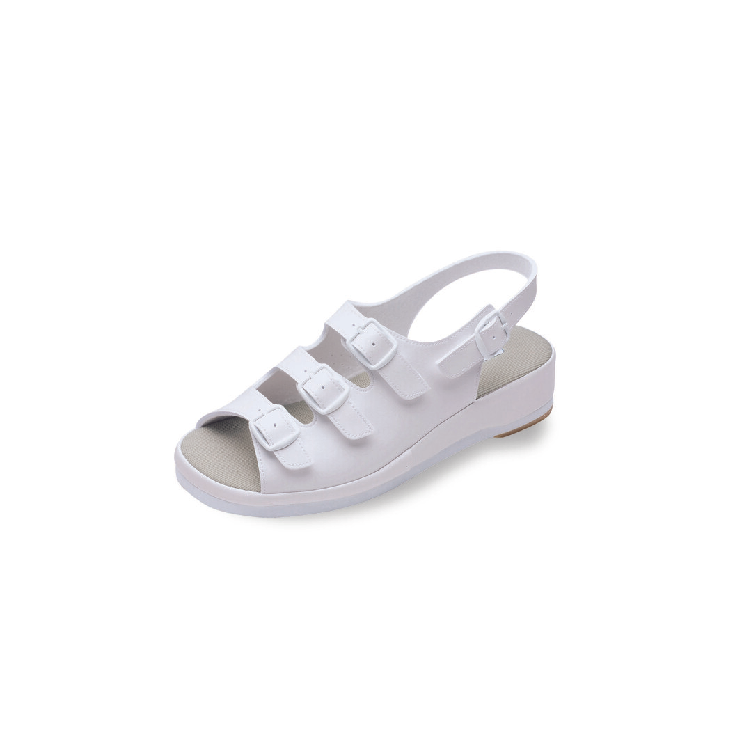 足の甲に3つとかかとに1つで合計4つのバックルで、自分の足にぴったりとあわせることができるコンフォートサンダルです。足幅は広いけれど、甲の厚みは薄い足、甲高の足、細身の足、大きめの足などあらゆる足にぴったりフィットします。ブルーとピンクは女性用サイズ、ホワイトは男女兼用で履くことができ、大きいサイズまで、幅広く豊富に取り揃えています。抗菌・防臭加工で雑菌やにおい、汚れ等を最小限に抑えてくれるうれしい機能が満載のコンフォートサンダルです。足囲(ワイズ):E~4Eまで調整できます。