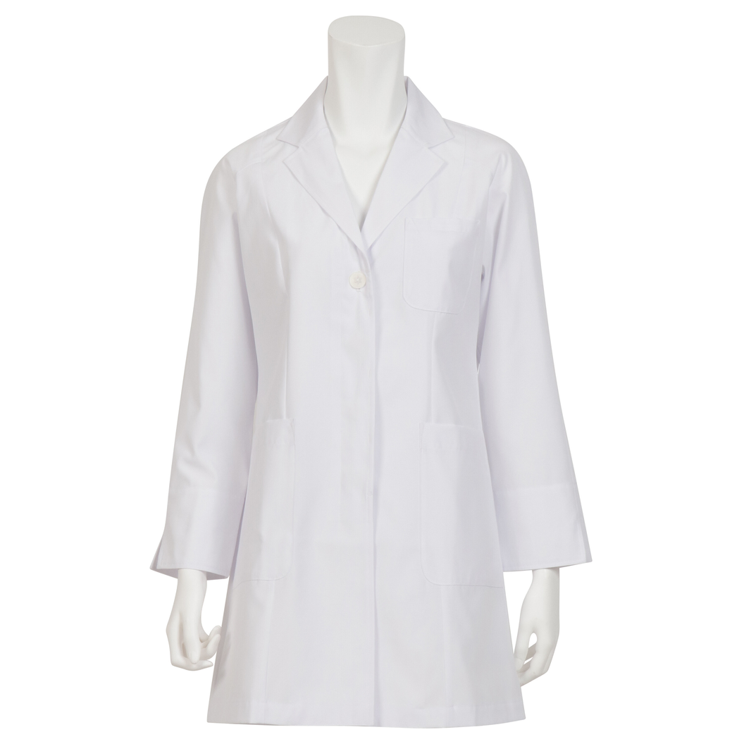 ドクターにも薬局衣としてもおすすめのハーフ丈コートです。接客から棚卸などの大きな動きまで、あらゆる作業を考慮した機能性抜群の女性用ハーフコートです。第一ボタンは星モチーフでデザインのアクセントになっていてオシャレ。袖口スリット、脇下のゆとり、ラグラン風の袖など運動面も優れています。型崩れしにくい、ハリコシがあり、吸汗性と速乾性が高く、肌触りの良い高品質な生地を使用し、高級感も演出。薬局衣などでも採用実績も多い女性用ハーフ丈コートです。