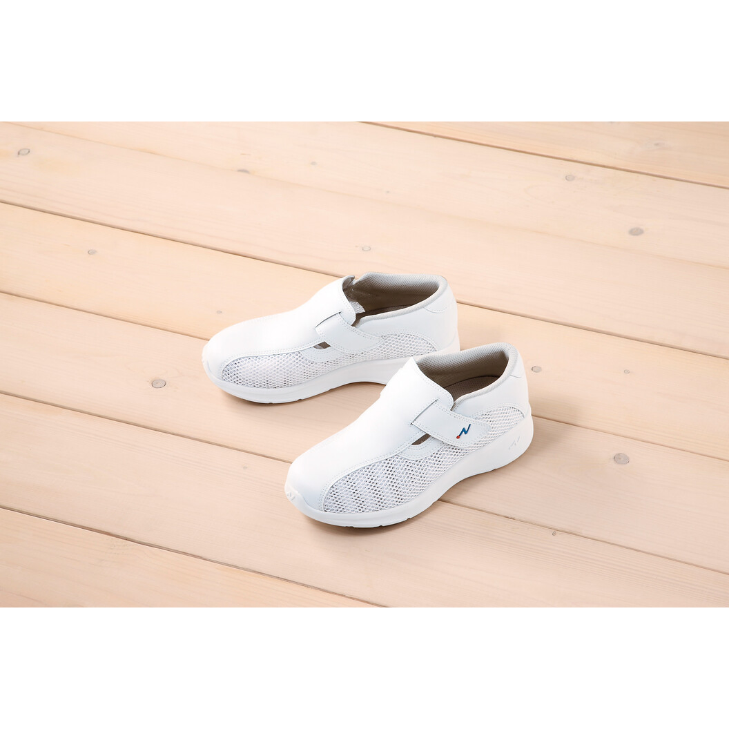 人気の男女兼用ナースシューズです。静電気帯電防止機能があるので、安心して着用いただけます。ダブルメッシュ仕様で通気性にも優れています。合成皮革靴底に通気孔が開いているため、院内専用としてお使いください。中敷には静電インソール3Dを使用しています。抗菌・防臭加工のヒールカップ付きです。ヒールの高さは3.5cmと歩きやすい高さに設計しました。22.0cmから29cmまでと小さいサイズから大きいサイズまで豊富なサイズで取り揃えております。足囲(ワイズ):4E