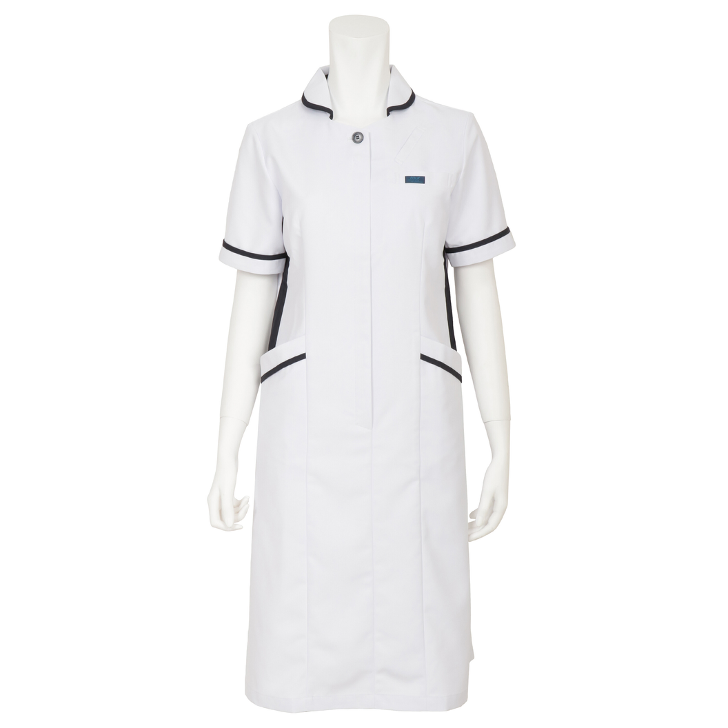 インナーがひびきにくい、高い防透性とほどよい伸縮性を兼ね備えたワンピースです。脇に入ったネイビー配色と部分的なテープ使いで全体が引き締まり、キリッとした印象に。ストレッチ性のある素材を使ったワンピースなので、着心地や肌触りの良さも魅力です。SEK制菌加工を施したワンピースなので、繊維上の黄色ぶどう球菌・肺炎桿菌・MRSAなどの増殖を抑えてくれます。小物を引っ掛ける、多目的なフックとして使え、使用しない時はポケットにしまうことのできるワンピースです。
