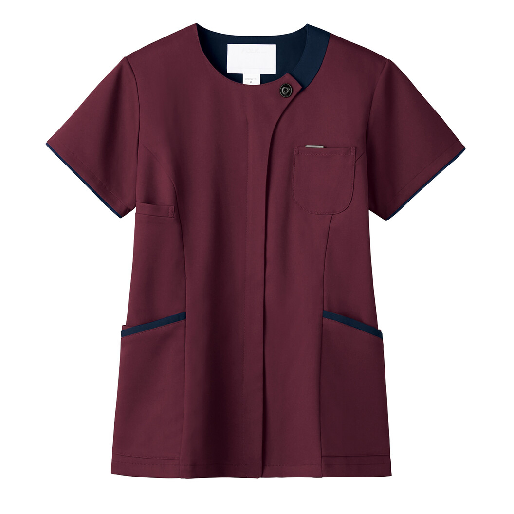 エレガントなラウンドネックが新鮮なスレンダーシルエットのレディースジップスクラブです。伸縮性のある素材のノンPUストレッチは、ポリウレタンを使用せずに高伸縮性を実現しています。便利な小分けポケットやタブレットも入る大きさのポケットなど機能性も抜群です。羽織って着るジップタイプなので、着脱時に髪型が乱れたりメイクが崩れる心配がありません。シンプルでありながら、首元のボタンや、折り返して着られる袖デザインで、部分的に施された配色がオシャレなレディースジップスクラブです。