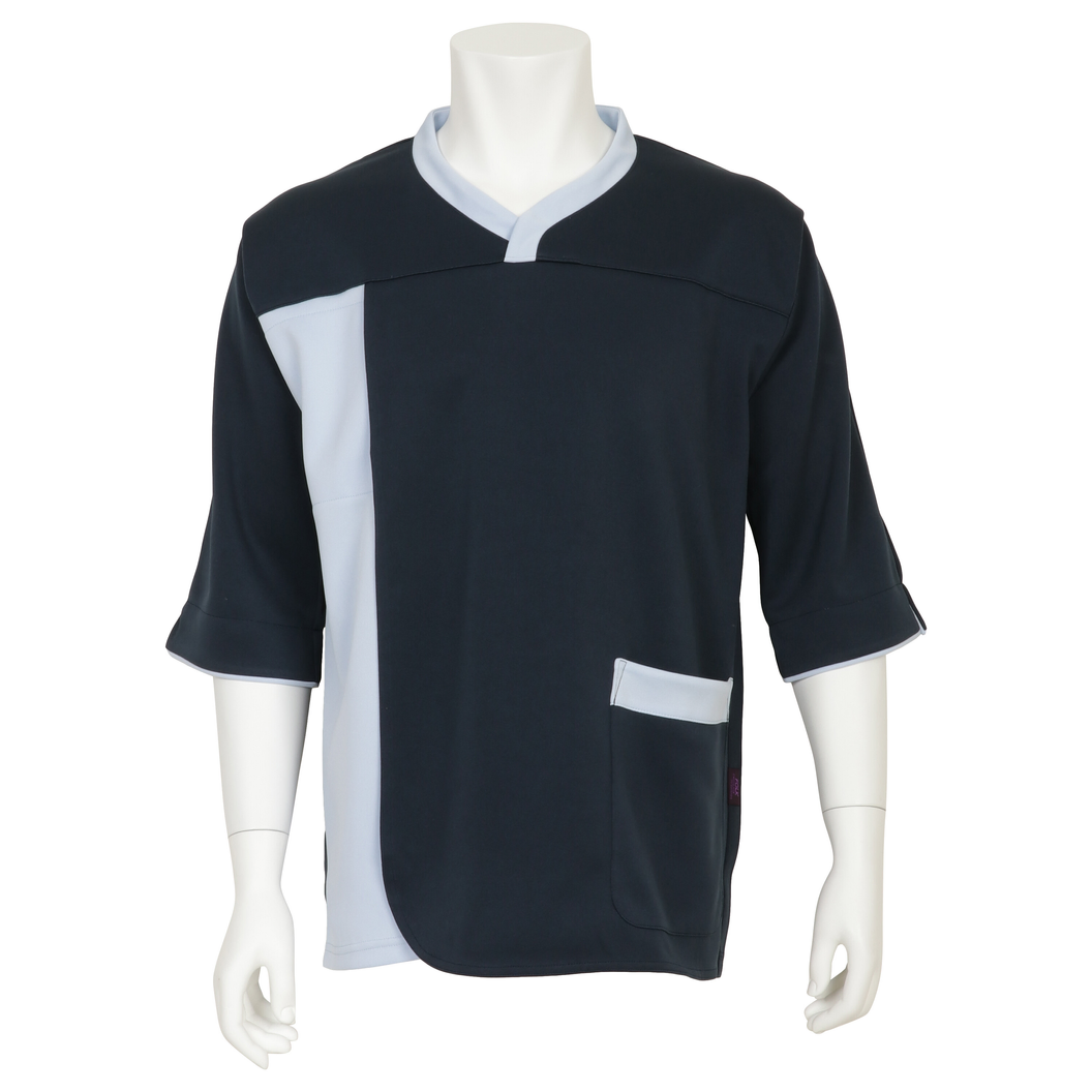 被りやすく開きすぎない襟元になっています。落ち着いた配色なので様々なシーンに対応可能の検診衣です。前が大きく開くので検診しやすいデザインです。腕まくりしやすいよう、袖口スリット入りの検診衣です。男女兼用でカラー展開もあります。厚みがありフラットな素材の4段スムースは柔らかな肌触りで透けにくく、受信者満足度向上に最適です。ポリエステル100%でありながら4層構造の組織により、汗をかいても素早く吸収し拡散する、着心地と快適性を追求した素材を使用した検診衣です。