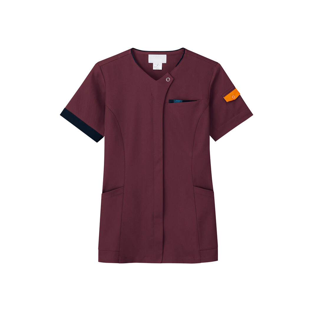 背面にニット素材を施すことで動きやすさを重視した、袖のアシンメトリーがオシャレな前センタージップの男女兼用スクラブです。カラーバリエーションが豊富なので、一つの商品で部署ごとに色分けした採用が可能に。左袖ポケットの蛍光フラップは、出す・入れるの着方で日勤夜勤の勤務を識別する役割を果たしてくれます。後右裾のスリットファスナーは、消毒用アルコールを腰につける際に、ファスナーを開けることにより、綺麗に収まります。スリットとしての機能もあるので、しゃがんだりする姿勢の時も足さばきが良く、動作がスムーズになり、ストレスなく快適にお仕事していただけます。デザイン性と機能性を兼ね備えた、男女兼用のジップスクラブです。
