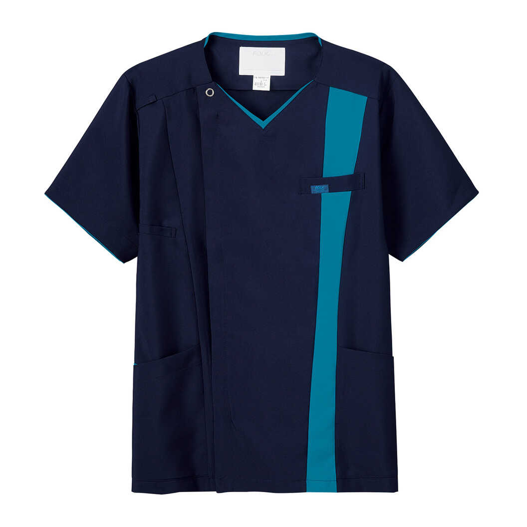 左前に施した配色の縦ラインがオシャレなメンズジップスクラブです。メンズスクラブのジップ部分は男前立(右前)合わせのため、シャツやジャケットと同じ感覚で着られます。強固なマスト(帆)をイメージして開発した素材イリアスマストを使用しています。カオチン染料を使用しているので洗濯による色落ちが少なく、商品への移染もしにくいのが特徴です。吸汗・速乾性があり、イージーケア性に優れています。両腰のポケットや右肩と腰のループなど収納性も抜群です。ハリコシのあるサラリとした着心地のメンズジップスクラブです。