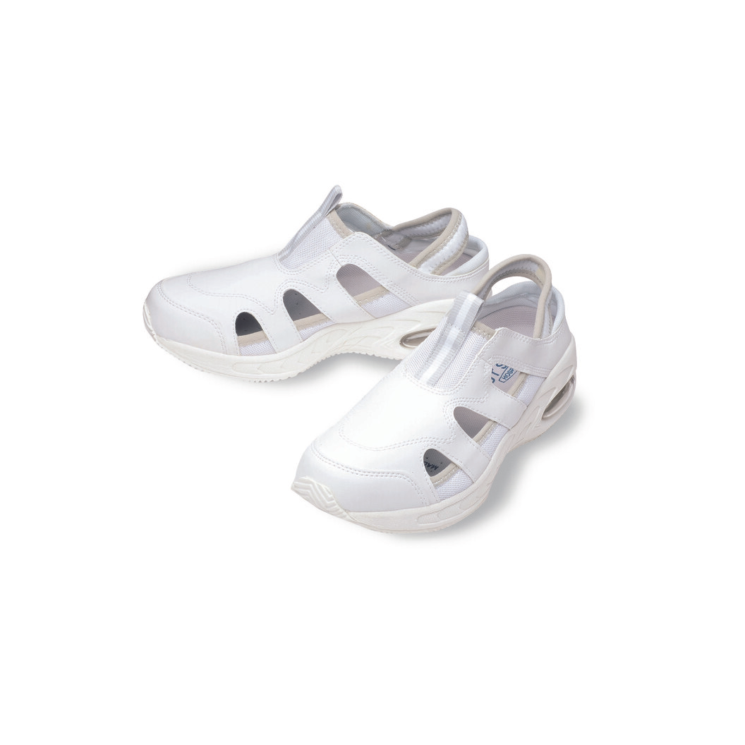 足にジャストフィットするストレッチ素材のユニセックスのナースシューズです。カップインソール、ミッドインソール、静電気帯電防止ゴムと3層設計になっているので、制電性も抜群です。抗菌防臭機能とエアークッション内蔵で歩きやすさ抜群。脱ぎ履きの多い時にはバックバンドを踏んでサボタイプとしてご使用いただける便利な2wayタイプです。男女兼用なので、大きいサイズまで0.5cmピッチで幅広く取り揃えている人気のナースシューズです。足囲(ワイズ):3E