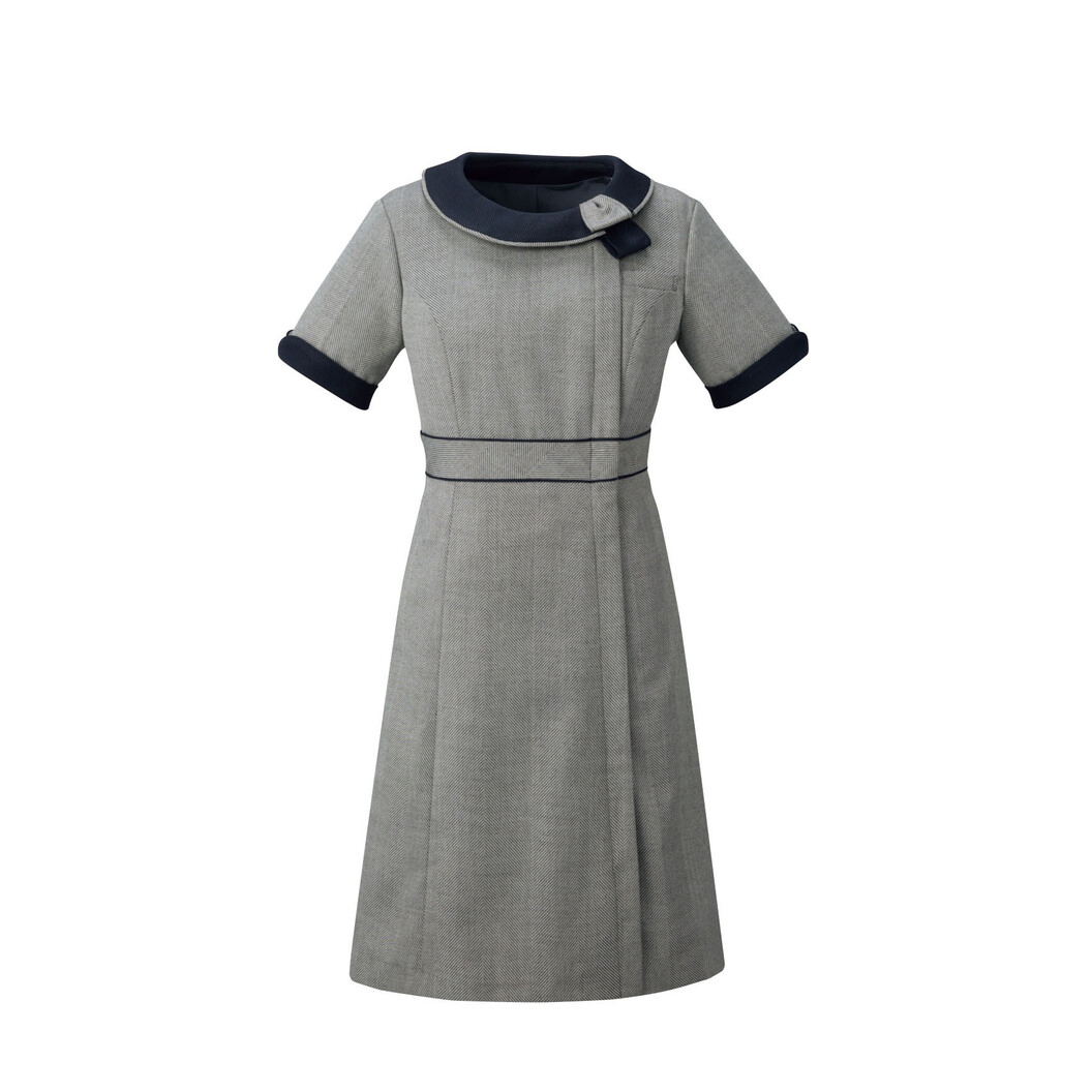 大柄ヘリンボーンで、落ち着きと高級感のあるワンピースは、オールシーズンでも着用できる素材を使用し、着心地にも優れています。チューリップ型のカフスは折り返して着用することもできる2WAY仕様です。襟元のリボンも取り外し可能です。切替ウエストベルトは、通常より高めなウエスト設定のため、足長効果も期待できます。シックな色合いでより上質なフェミニンに。信頼感と親しみやすさを加味したおもてなしスタイルのシンプルネイビーなワンピースです。